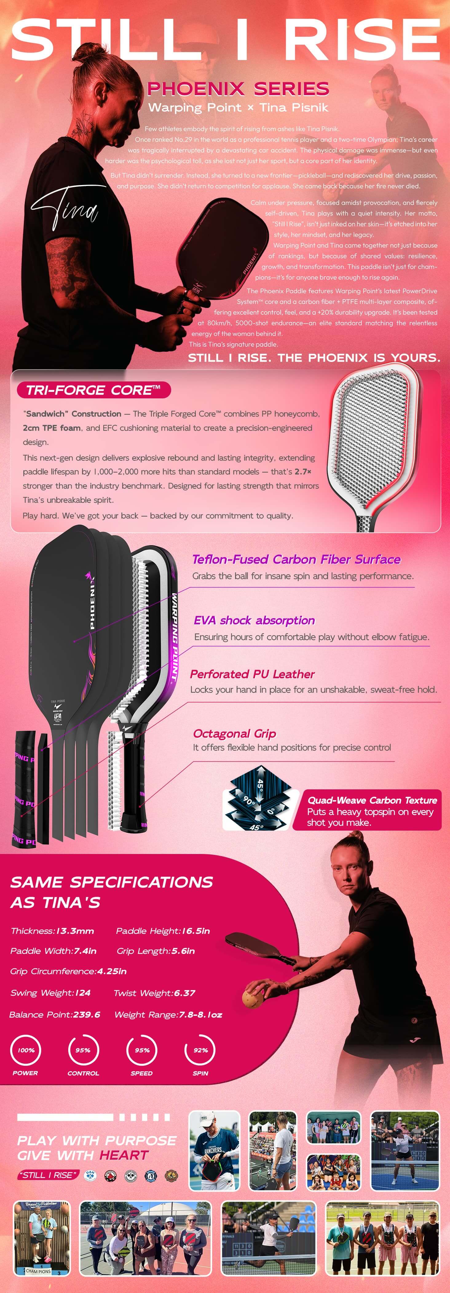 The phoenix series, co-designed with former WTA Top 30 and PPA pro Tina Pisnik, seamlessly blends top-tier performance with Tina Pisnik's exceptional resilience. Blends pro-level insight with precision engineering — ideal for advanced players seeking tactical power.
